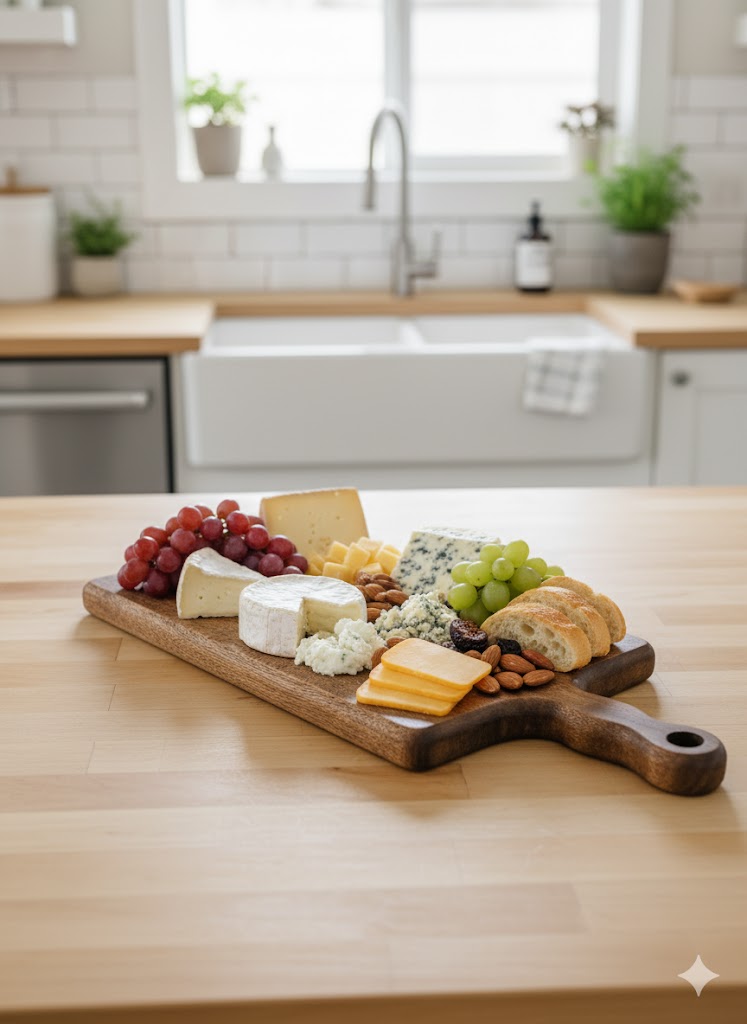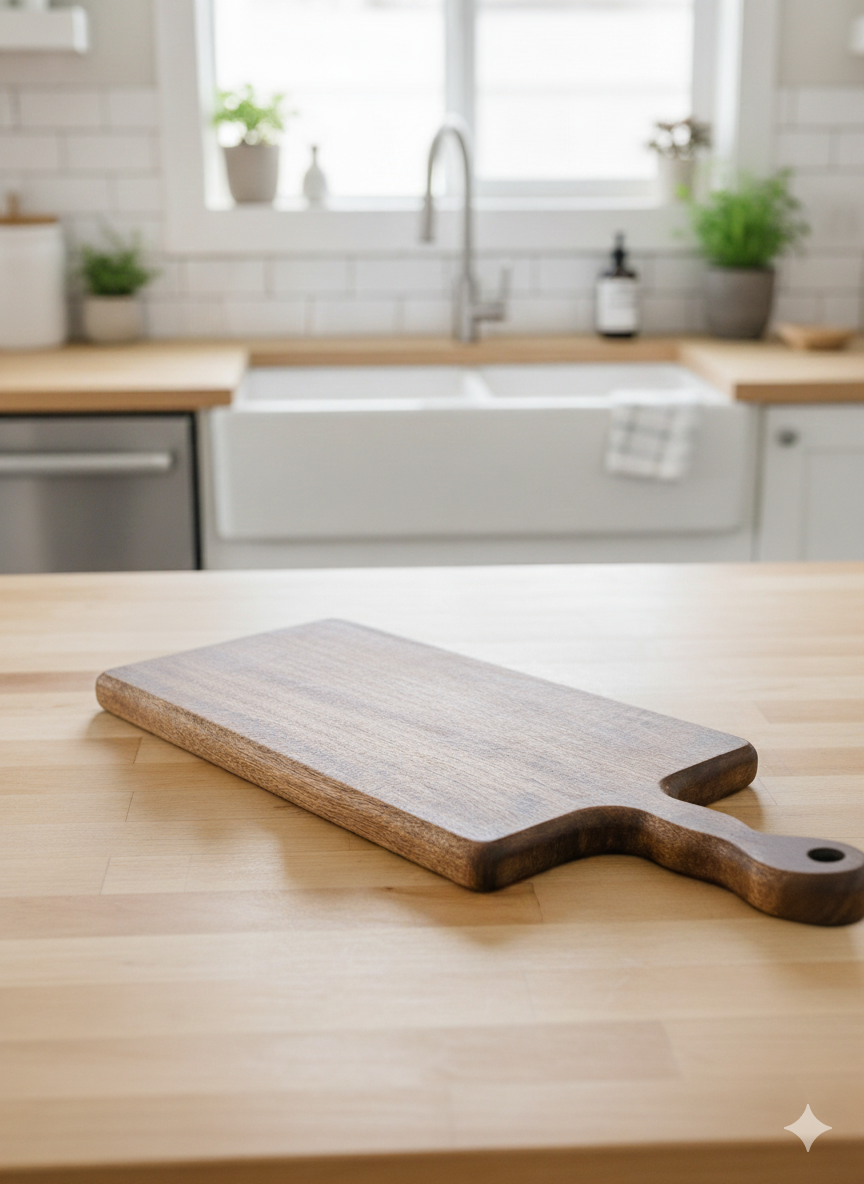 Tamamen el işçiliği ile üretilmiş cilalı ahşap sunum, kesme tahtası. Cilalı olduğundan daha çok gıda sunuma uygundur.